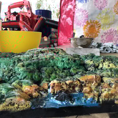 Internally - environment to house my stories many layers the internal lid is going to be I reworked multimedium artwork that will become a cartographic view of the shipwreck coast of southwestern area of Victoria as I imagined it was when it was untouched and pristine. Behind the shipwreck coast going to be a whaling scene to give reference to the old scrimshaw carving the sides of the internal are going to be colored pastures and paddocks the colors of today surrounding you from all sides maybe a wind farm windmill